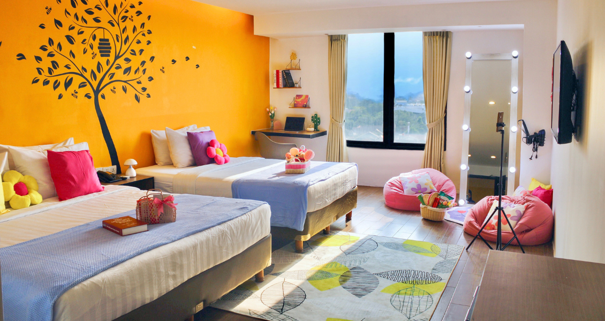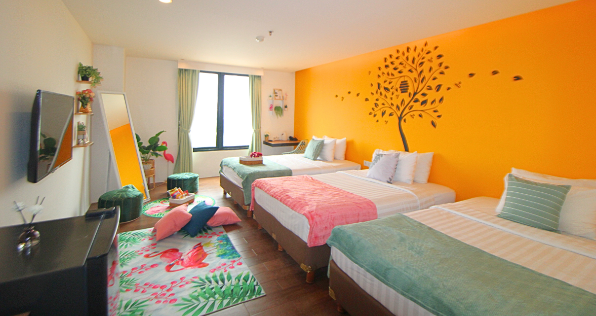 Our Family Room features two double bed inside 34 sqm of space, suitable for 2 adults with 2 kids. Inside room playground and educational toys are provided for children's best experience staying at Yellow Bee Tangerang.