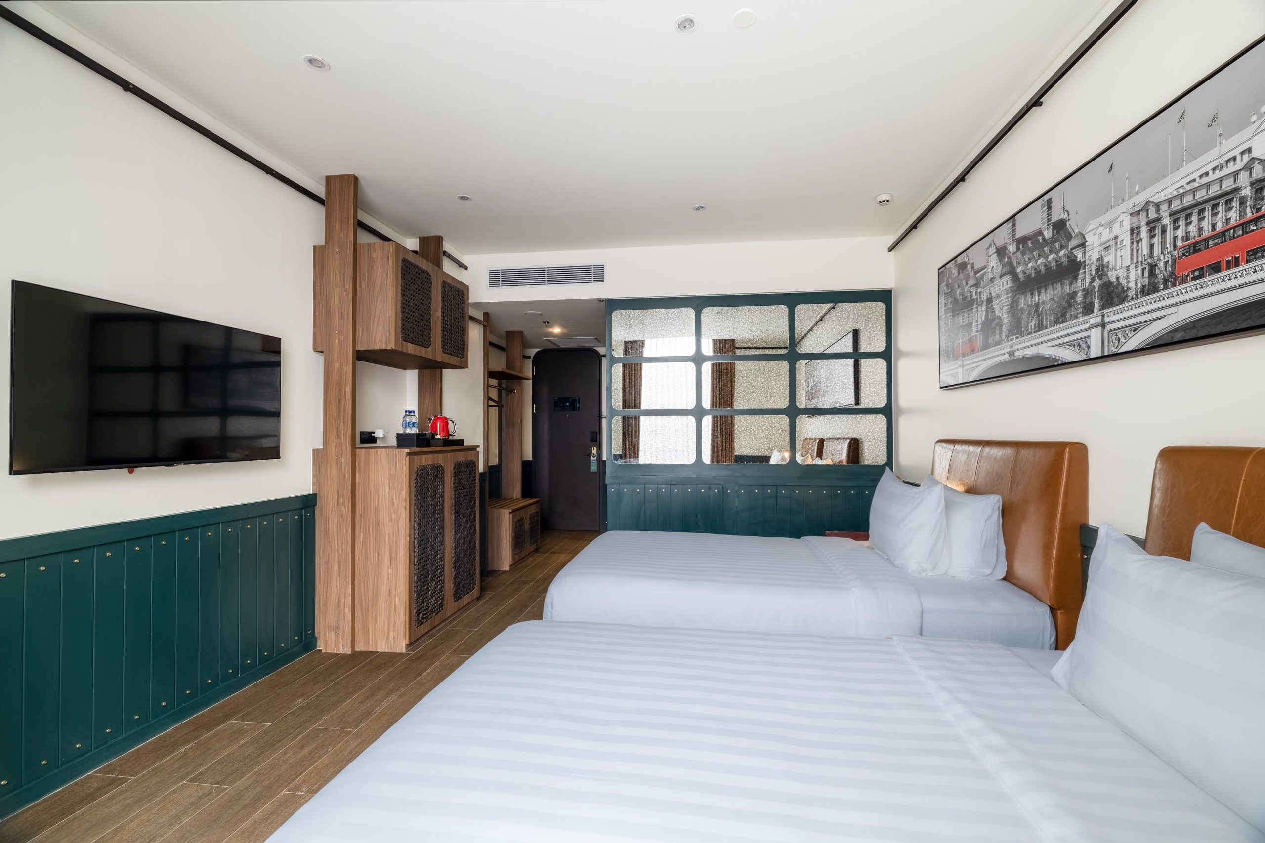Nikmati kenyamanan dan gaya di kamar hotel kami yang luas dengan tempat tidur twin seluas 31m2, cocok untuk menginap santai.